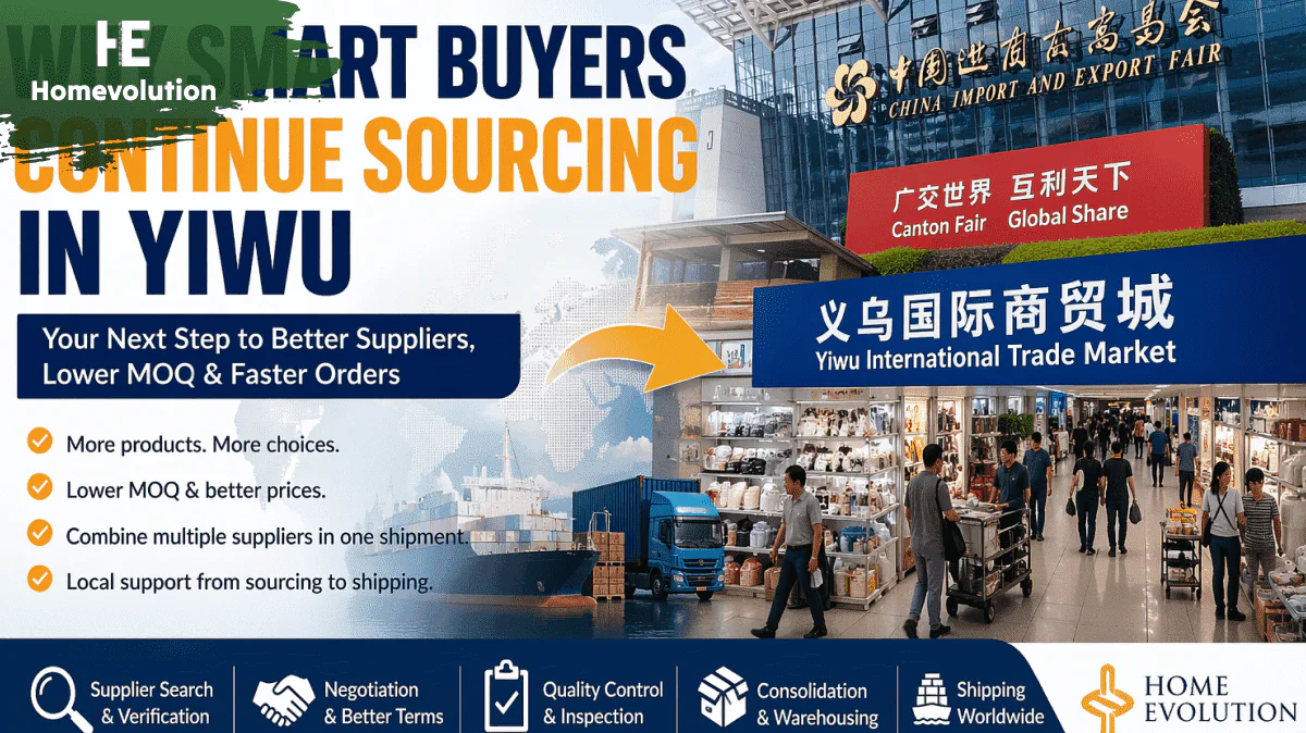 If your team visited Canton Fair and still needs support with supplier selection, better pricing, or full order execution, Home Evolution is ready to help. We turn sourcing opportunities into finished shipments — with clearer communication, lower risk, and stronger results.
